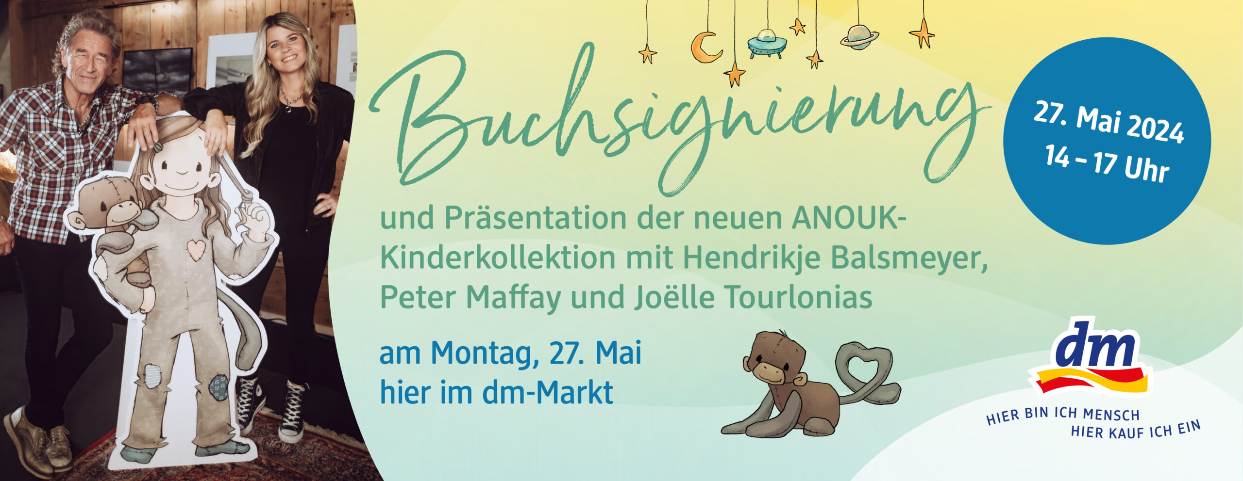 Anlässlich des Launches ihrer Kinderkollektion haben die beiden außerdem eine Signierstunde gegeben. Die Buchsignierung mit Hendrikje Balsmeyer und Peter Maffay fand am 27.05. in unserem dm-Markt statt (Erdgeschoss im MERCADO Nürnberg).