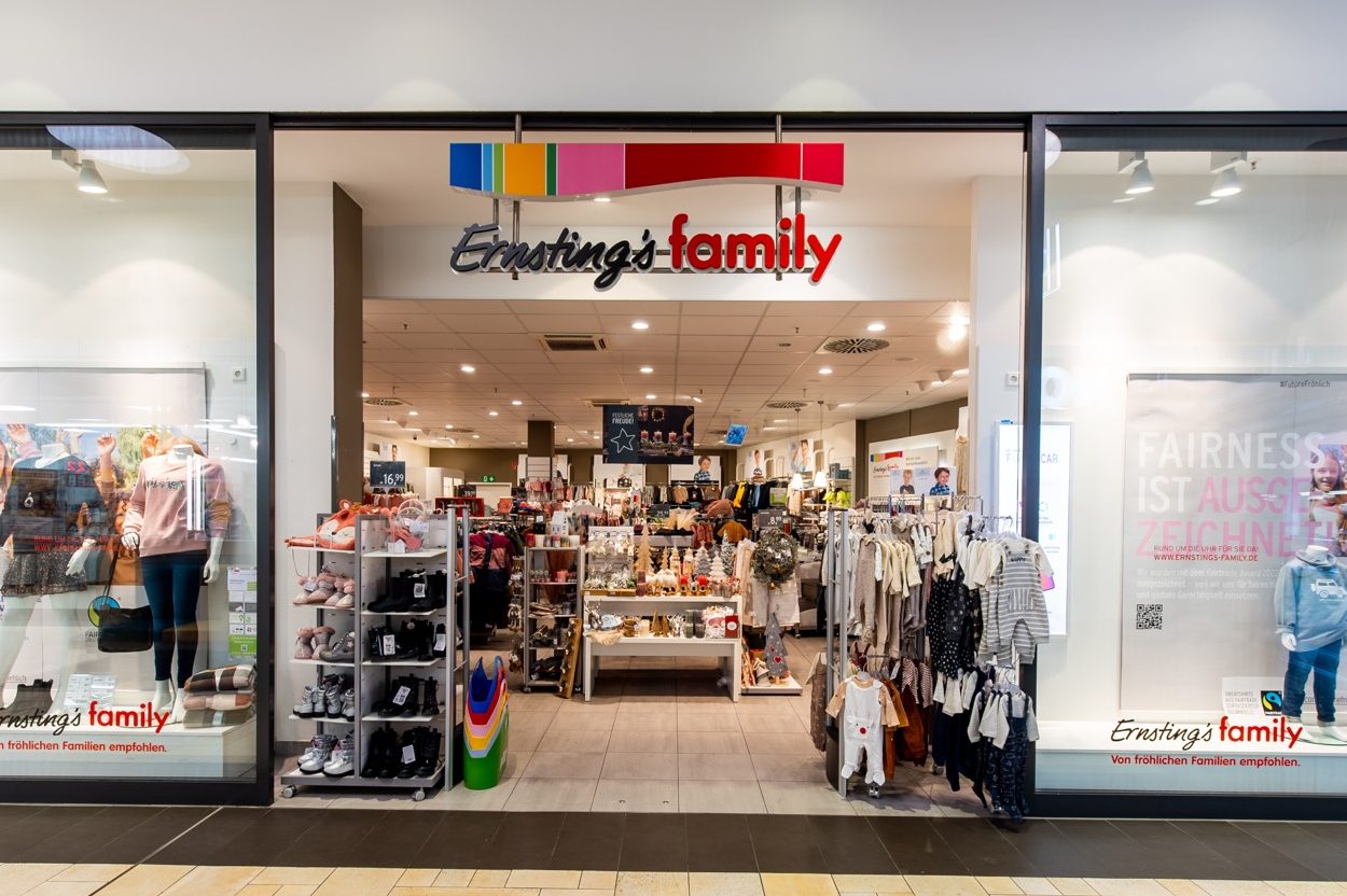 „Von fröhlichen Familien empfohlen“ – so lautet das Motto bei Ernsting’s family, einem der größten Textilunternehmen Deutschlands. Seit mehr als 50 Jahren bietet Ernsting’s family aktuelle Mode, trendige Accessoires, Spielwaren und schöne saisonal wechselnde Deko-Artikel für die ganze Familie zu einem tollen Qualitäts-Preis-Verhältnis. Reinschauen lohnt sich immer! Wir wünschen Ihnen ein angenehmes Shoppingerlebnis!